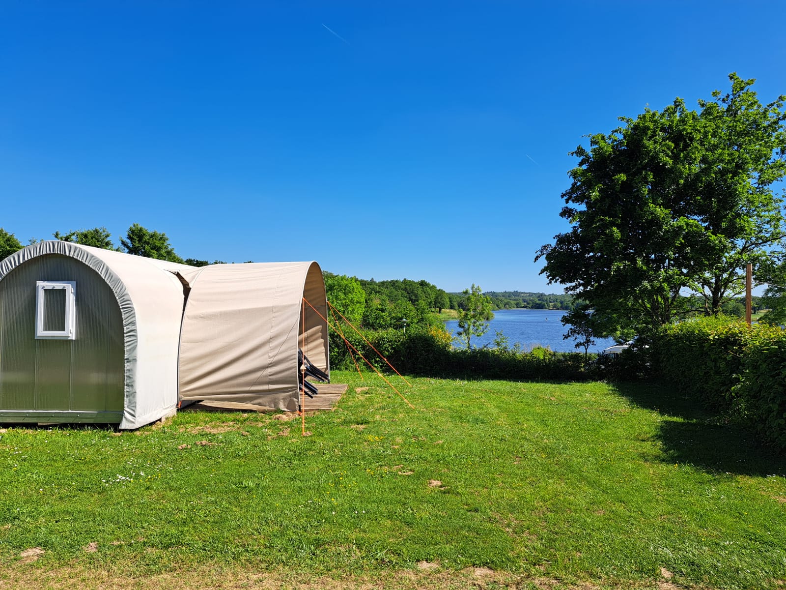 Les Coco Sweet du camping en Charente offrent un parfait compromis entre confort et esprit camping. Bien pensés et fonctionnels, ils disposent de deux espaces nuit : l’un avec un lit double et l’autre modulable avec lits jumeaux ou banquettes pour créer un véritable coin salon. Le coin repas équipé permet de préparer et partager facilement les repas, tandis que la terrasse toilée, aménagée avec salon de jardin et parasol, invite à profiter pleinement de l’extérieur. Implantés dans un environnement calme et verdoyant, les Coco Sweet bénéficient d’emplacements agréables. Deux de nos Coco Sweet profitent d’un emplacement privilégié avec une vue imprenable sur le lac, offrant un cadre exceptionnel pour des réveils face à l’eau et des moments de détente inoubliables au cœur de la nature. Les adeptes du camping plus traditionnel seront séduits par nos grands emplacements nus proches de Limoges.